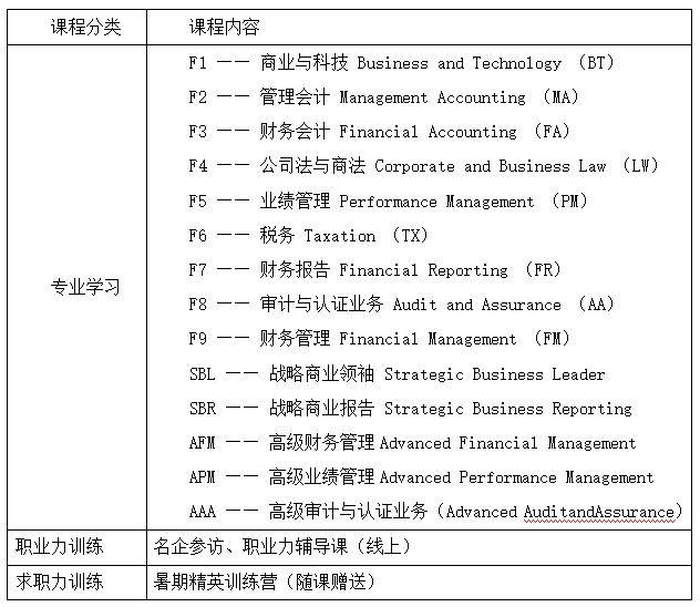 三、ACCA方向班课程安排